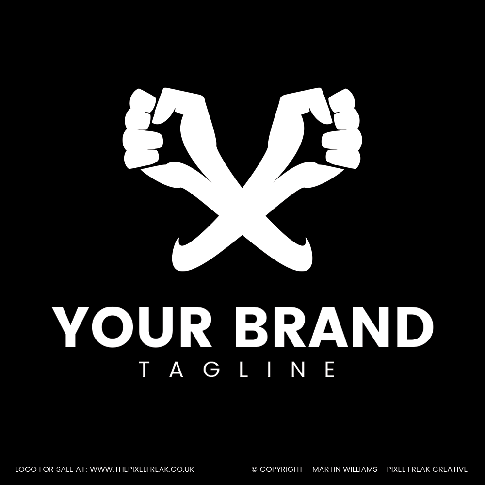 An ‘X’ doesn’t have to be literal. This powerful concept forms the letter from two crossed fists, creating a symbol of strength, rebellion, or community. This metaphorical approach to X logo design is ideal for gyms, high-energy brands, or social movements.